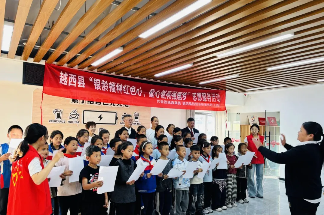 团会东县委 、 团西昌市委、 团越西县委、 团喜德县委组织 银龄志愿者、西部计划志愿者及青年大学生志愿者开展“天府银龄 牵手关爱”志愿活动。志愿者陪伴困境儿童、留守儿童、青少年,开展学业压力和同伴矛盾的调节方法分享,家乡发展故事分享,课业辅导、绘画教学等服务,带领孩子们举办红色音乐会,学唱红歌,并赠送文具慰问品。