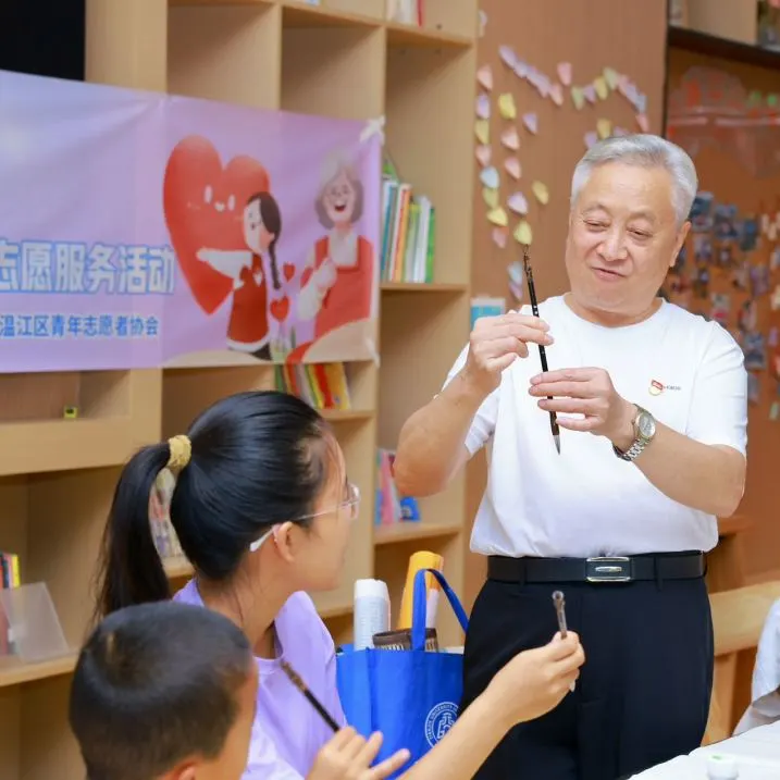 团温江区委、团蒲江县委组织西部计划志愿者和银龄志愿者陪伴青少年,分享故事、学习书法、做手工和传统文化趣味游戏、畅谈环保小知识。