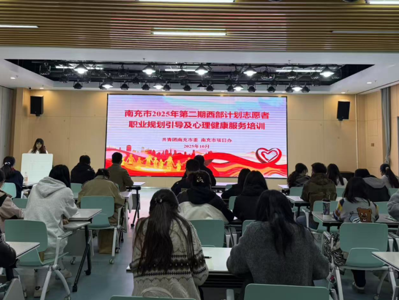 团广安市委、市西部计划项目办在广安职业技术学院开展2025年第二期职业规划引导及心理健康服务活动,全市200余名西部计划志愿者参加活动。培训会上,全体志愿者深入学习党的二十届四中全会精神。随后,相关专家从“思维跃迁、能力盘点、成长路径、实践举措”等方面开展职业规划引导。心理健康辅导课程围绕“心态转换、情绪管理、自我滋养、人际连接”等内容,帮助大家快速掌握心理调适方法。