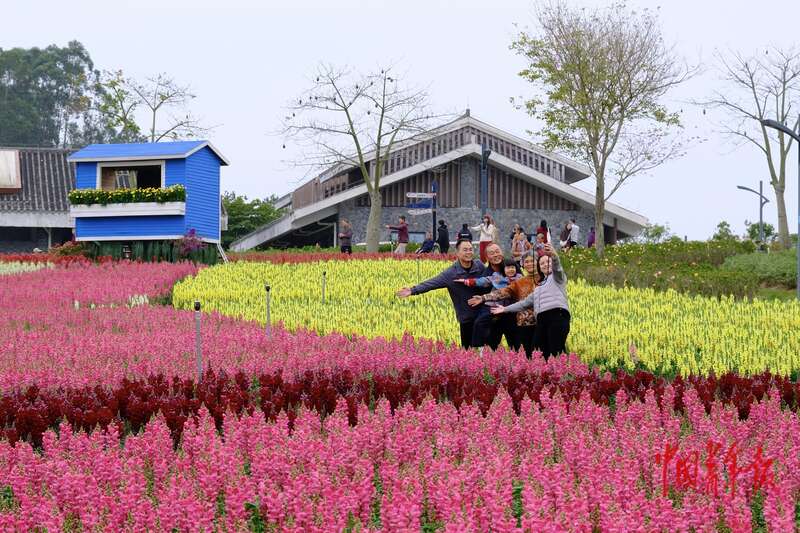 2月17日,广西南宁,南宁园博园景区内,30万株金鱼草、2.1万株紫罗兰组成的新春花海吸引游客拍照留念。中青报·中青网记者 尹希宁/摄