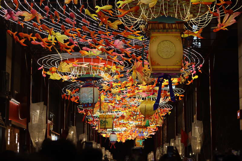 2月17日,北京,前门步行街及周边商圈彩灯璀璨,吸引大批游客赏灯。中青报·中青网记者 余冰玥/摄