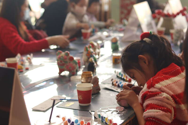 2月18日,北京,孩子们在中国非物质文化遗产馆体验彩绘。中青报·中青网记者 余冰玥/摄