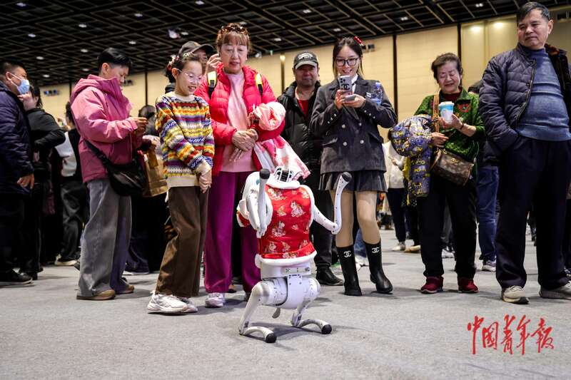 2月18日,北京,国家会议中心二期,2026大都新春庙会,机器狗给人们拜年。中青报·中青网记者 陈思阳/摄