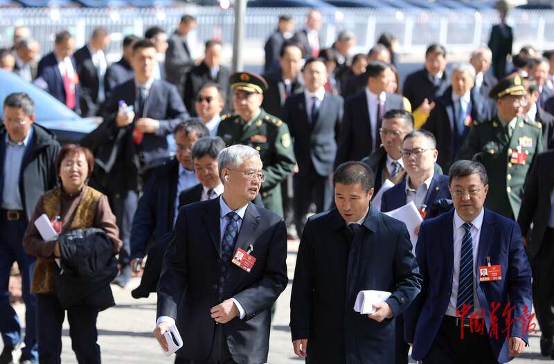 3月9日中午,北京会议中心,十四届全国人大四次会议第二次全体会议结束后,列席会议的委员们从北京人民大会堂返回驻地。下午,他们将进行小组会议。中青报·中青网记者 陈剑/摄