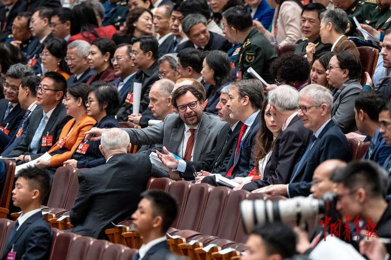 3月9日,北京,十四届全国人大四次会议第二次全体会议,旁听会议的外国使节。中青报·中青网记者 李隽辉/摄