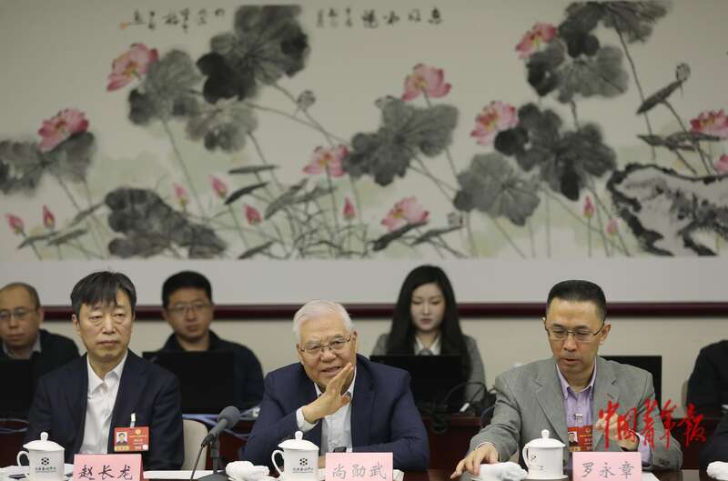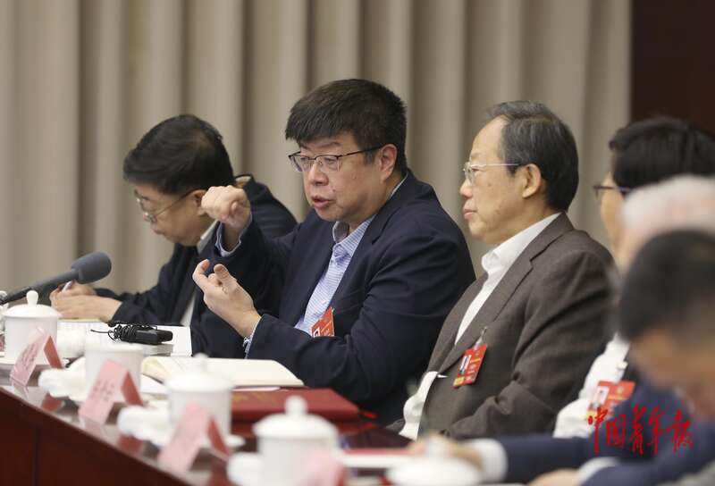 3月10日,北京会议中心,全国政协十四届四次会议民进界别小组会,全国政协委员、甘肃省政协副主席尚勋武(中)发言。中青报·中青网记者 陈剑/摄