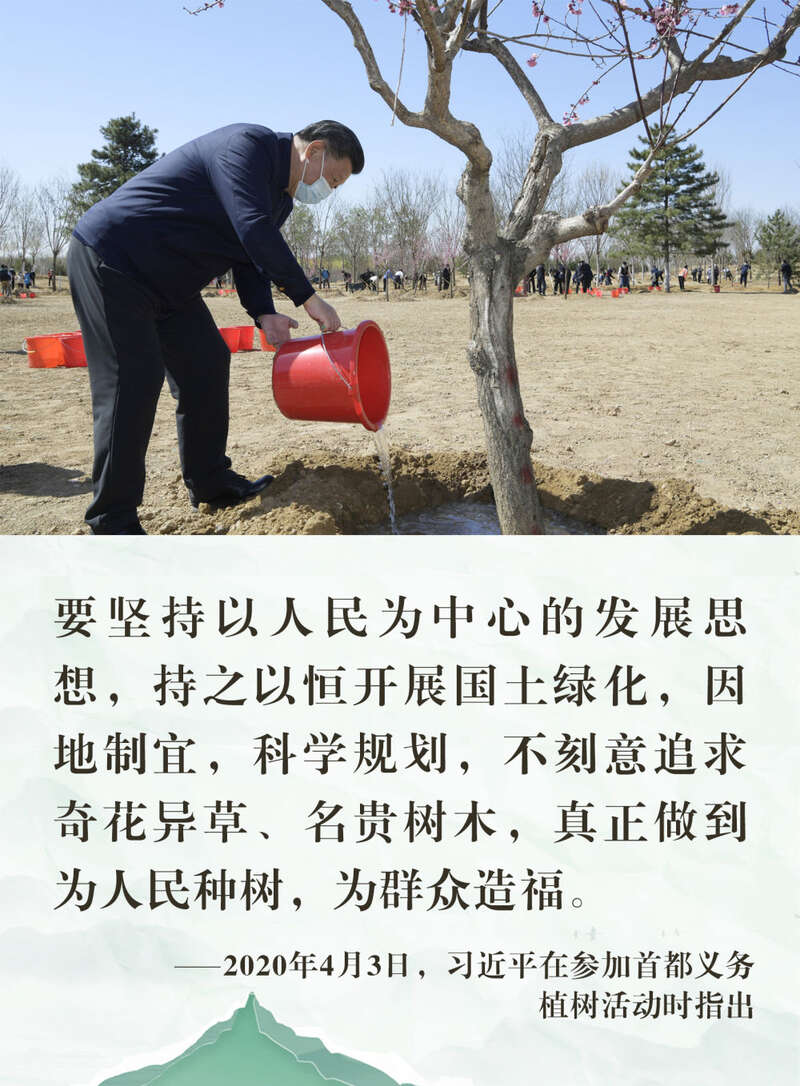 在参加义务植树活动期间,习近平总书记多次强调实事求是、因地制宜、科学规划,真正做到为人民种树、为群众造福。