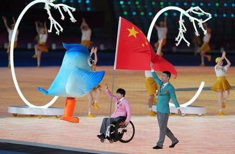 黄晓连、孙刚任旗手 中国亚残运代表团入场迎全场欢呼