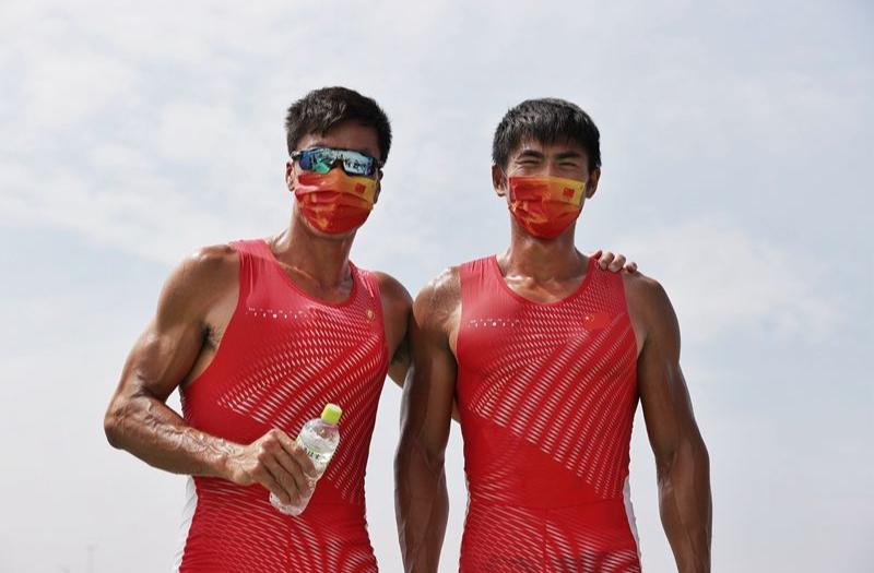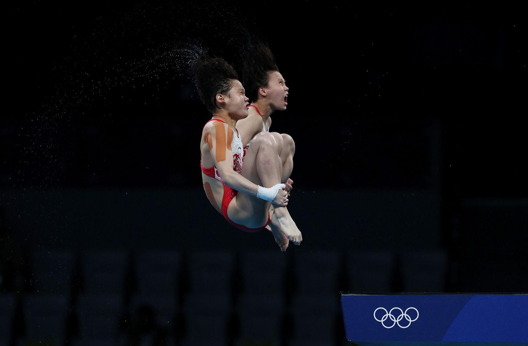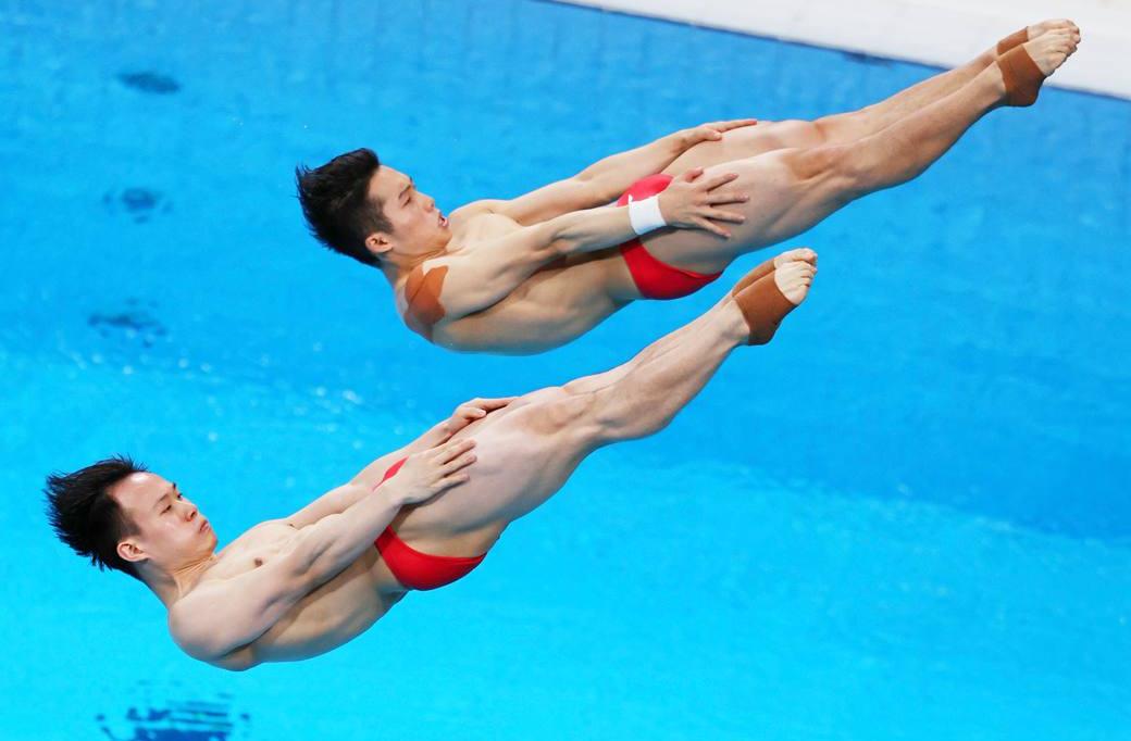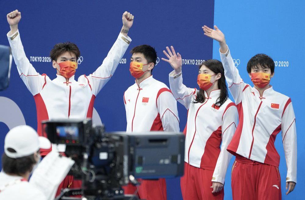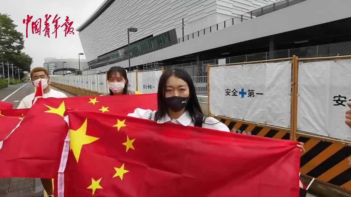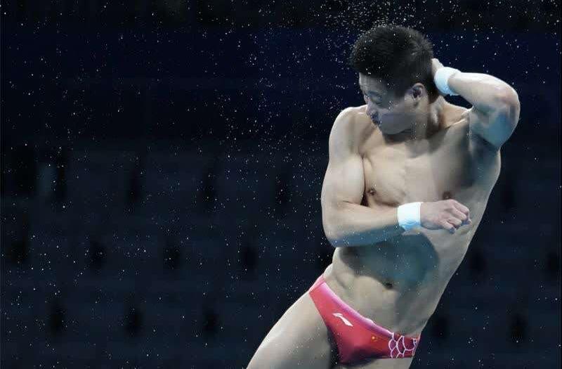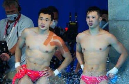 两名跳水小将在颁奖仪式后举着国旗比心,太可爱了。
