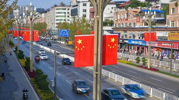 国庆前夕,全国各地街头纷纷挂起五星红旗,大街小巷旗帜飘扬。