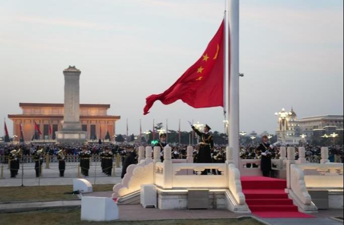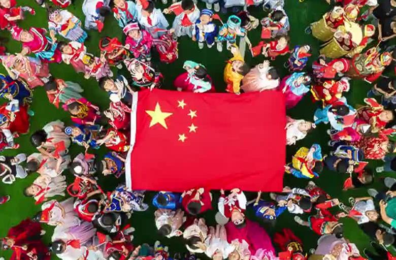 “冉冉升起的旗帜背后,是一个强大的中国。”