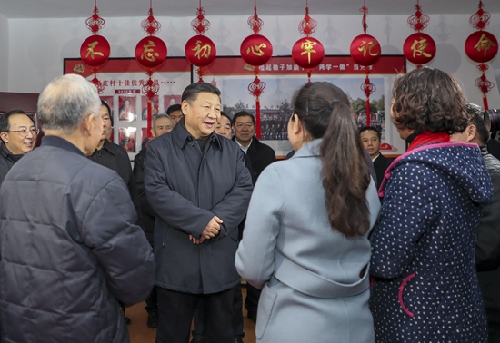 12月12日至13日,中共中央总书记、国家主席、中央军委主席习近平在江苏徐州市考察。这是12日下午,习近平在潘安湖街道马庄村党员活动室与正在学习党的十九大精神的党员交流。新华社记者 谢环驰/摄