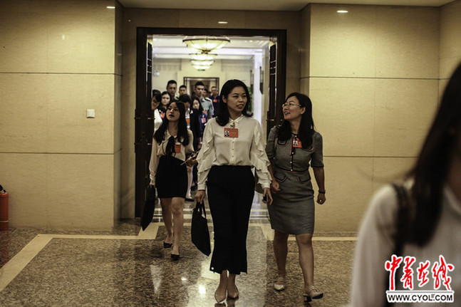 6月28日,北京,共产主义青年团第十八次全国代表大会,分组讨论会议结束后,代表们在交谈。中国青年报·中青在线 赵迪\摄