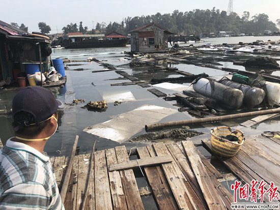 2018年11月8日,泉州市泉港区肖厝村,一名养殖户在清理现场。