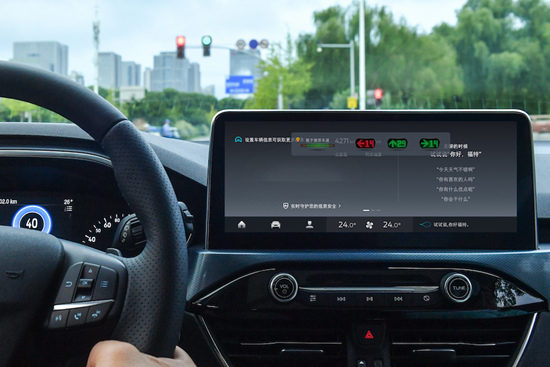例如计划上线的V2I预商用功能——“绿波车速引导功能”。通过SYNC+车机屏幕显示和语音提醒,该功能可提示驾驶者在条件允许的情况下按照推荐速度区间行驶可直接通过路口,减少等待红灯时间,既节省油耗又提升整体交通效率。