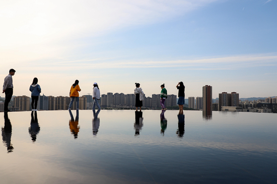 游客在某“天空之镜”景点游玩。视觉中国供图